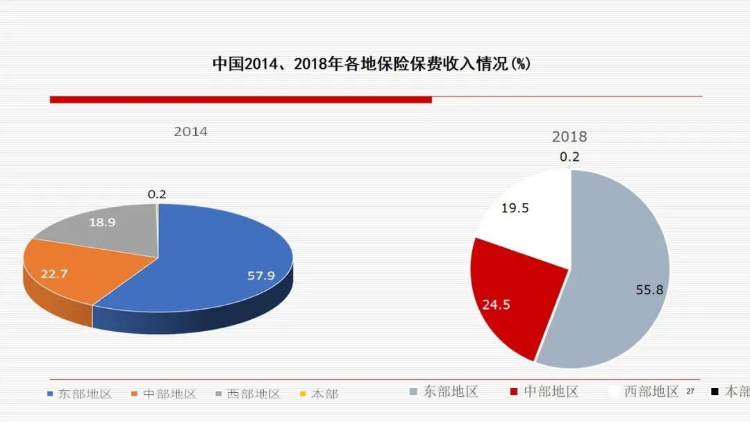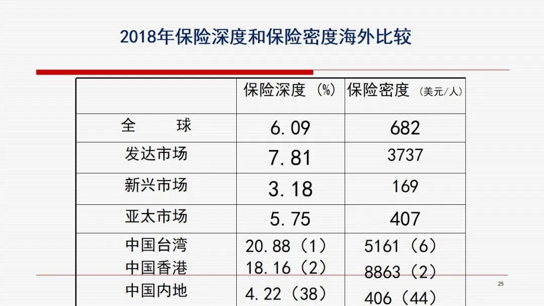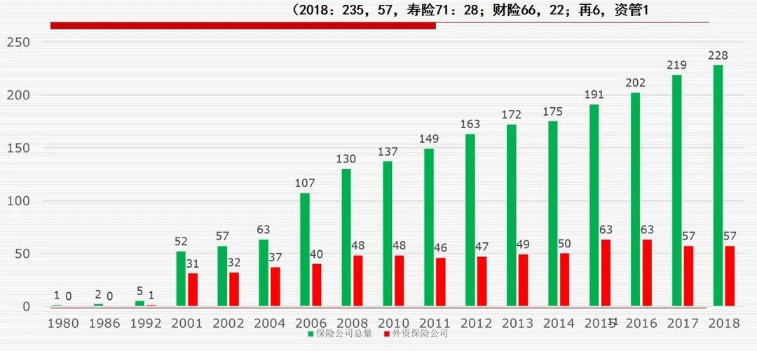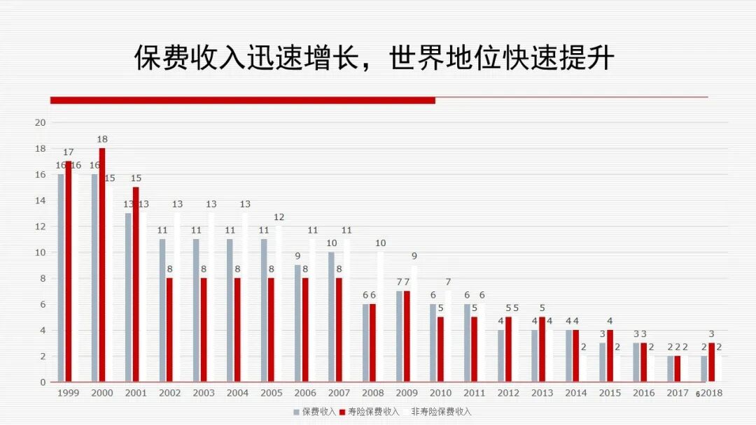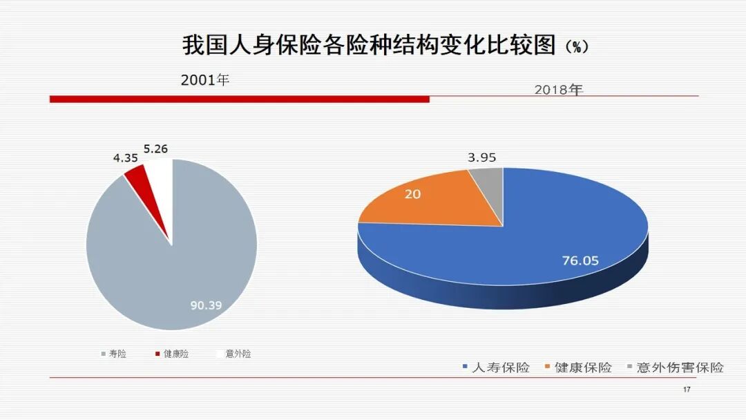 未来以大数据为载体的保险服务化,将是我们国家保险业一个新的起点,它将是我们国家保险业从保险大国向保险强国的迈进。 以下内容节选自直播实录: 本文围绕四部分内容展开 1、中国保险业发展的成就 2、中国保险业发展面临的矛盾 3、保险业发展面临的机遇 4、把握中国保险业发展战略的机遇 一、中国保险业发展的成就 我们的成就是多方面的,概括起来主要有以下十个方面。 第一,保险业得到了快速发展,保费规模不断扩大。我们从1980年恢复了国内财产保险,当时保费收入是46000万人民币。2018年我们保费收入达到42645亿,增长很快,同时在国际上的地位也显著提升。1999年我国保费在全球排第16位,2001年在全球排第13位。到了2017年绝对跨入保险大国,仅次于美国,位居全球第二,并在之后的几年一直蝉联。 第二,促进保险主体多元化,垄断竞争型保险市场正在逐步形成。1980年我国只有一家保险公司,1986年成立了第二家。到2018年,保险公司数量达到了228家,市场结构发生了很大的变化。2001年,当时第一大是中国人寿,占整个市场的38.5%;第二大是中国人保,占23.96%;第三大是平保,占22.19%。 再看18年的时候,财产保险市场第一大是中国人民财产保险公司,占比33.01%;第二大是中国平安财产保险公司,占比21.05%,第三大是中国太平洋财产保险公司,占比9.99%。简而言之,前五大公司占了70%多,高于一般情况。 18年寿险市场也发生了一些变化。第一大是中国人寿占比20.42%;第二大是中国平安占比17.02%;第三大是中国太平洋人寿保险公司占比7.67%;第四大是华夏人寿占比6.03%。前五大所占的份额大致是50%多,偏低于一般情况。 整个变化趋势是大公司的份额逐步降低,因为保险公司数量增加,竞争加剧。大公司规模是降低了,但是绝对量是增加的。 第三,促进外资保险公司增加,外资市场份额逐步提升。1992年第一家外资保险公司进入,就是美国友邦人寿保险公司。2018年外资公司达到了57家,其中寿险有28家,财险有22家,资管有1家,再保险有6家。 市场份额也发生了一些变化。外资市场份额从2001年的百分之一点多上升到了2018年的百分之六点多,其中寿险市场份额要高一些。 第四,促进了保险密度和保险深度的提高。 第五,促进产品多元化。产品多元化主要体现在五个方面,从财产保险为主,转向人身保险为主;在财产保险中,机动车保险占绝大部分;在机动车保险中,第三者责任险占绝大部分;在人身保险中,寿险占绝大部分;在人寿保险中,新型寿险占绝大部分。 人身险方面来说,人寿保险比重是下降的趋势,从01年的90.39降到18年的76.05。健康险是从4.35上升到了20。意外险从5.26下降到3.95。这同人民收入水平提高、人口老龄化也有关系。 新型寿险所占比重有所上升,2003年新型寿险是55.81,到了2013年是87.27。 第六,促进保险中介市场的发展,渠道逐步多元化。大家知道一个发达的保险市场必有一个发达的保险中介市场,保险中介可以提高市交易效率。我们所讲的代理人、经纪人,其他展业成本比一般低1/3到一半。同时,可以促进保险公司改善服务质量。因为保险经纪人代表投保人的利益,所以保险公司与保险经纪人的谈判过程中促使保险公司改善服务质量,同时也提升保险公信力。第三个是保险公估人。我们说保险中介公司从05年1790家到18年的2647家,其中代理公司从301增加1790,经纪公司从269增加到499,公估公司从220增加到353。 第七,促进了资本市场的发展,提升了保险的盈利能力。我们2006年开始投资收益,保险业是承保亏损,投资盈利。通过投资盈利又弥补承保亏损,最后达到综合盈利。综合盈利的目的是为了更好的做好承保服务。承保服务做好了,又赢得更多的客户。同时资本市场与保险市场是一对孪生兄弟。资本市场盈利促进保险公司承保能力提高,保险公司服务改善又增加保费,从而增加了资本市场流动性,又促进了资本市场的稳定,从而形成良性循环。 第八,促进保险公司治理和行业自律的完善。保险公司治理是逐步完善,行业自律也逐步完善。所以最近来说,险资、股权类投资上升,同这个也有很大关系的,当然资本市场需求也有关系。 第九,促进了保险监管制度的完善。我们国家1995年颁布了中华人民共和国第一部保险法,当然之前还有一些监管规定,之后又颁布了一系列保险的法规、规章。 第十,保险成为社会生活不可或缺的一个重要部分。一是政府重视,二是人民认识程度提高。 再一方面,保险法的完善,社保逐步理顺,2006年旧国十条的颁布和2014年新国十条的颁布,都大幅提升了国民的保险认知水平,让保险成为人们生活中不可或缺的一个重要的部分。这应该说我们的政府、企业和整个国民是有很重大贡献的。 二、中国保险业发展面临的矛盾 第一,市场作用与企业机制的矛盾。市场作用要发挥市场配置资源的决定作用,但是企业机制方面有些所谓的瓶颈问题没有解决,所以带来一些问题。 第二,保险业的供求矛盾问题。我们是人口第一大国,GDP第二大国,2018年我们中国内地保费收入是全球第二位。 我们的规模看上去大,但是其实扣掉人均就不高了。从保险密度来说,全球682(美元/人),发达市场3737(美元/人),新兴市场169(美元/人),我们是406(美元/人),排在88个国家第44位。 保险深度,即保费收入占GDP比重,它反映国家保险业在国民经济中的地位。中国内地是4.22%,排在第38位。我国台湾地区很